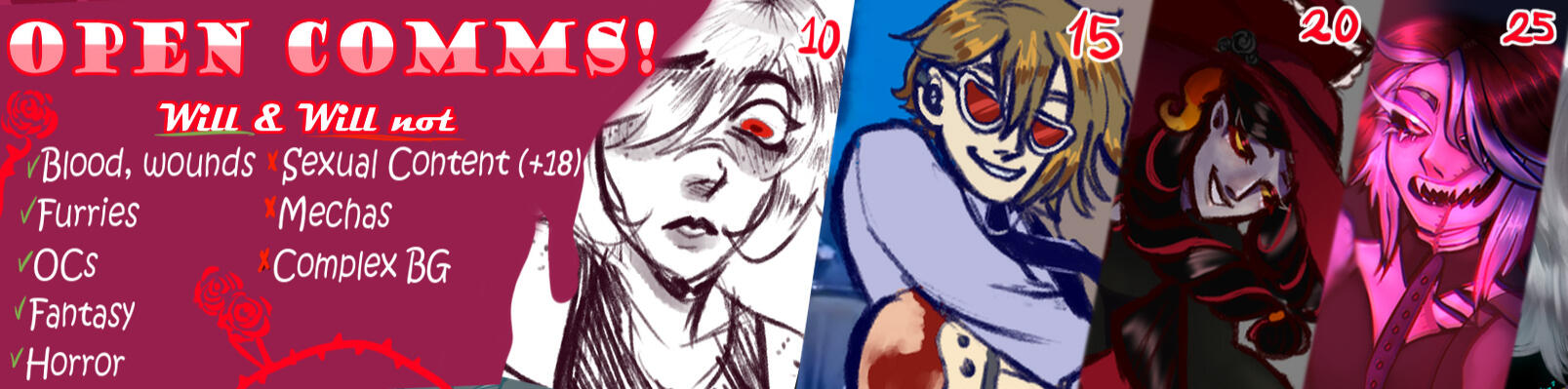 I'm an mainly digital artist! I love doing content of my original characters an share their stories through my art. If you want to commission me, just dm me in any social media! I usually check more my Twitter.